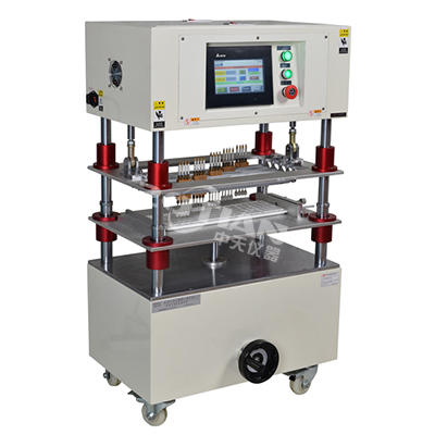 新升級鍵盤、金屬彈片、按鍵打擊壽命試驗機以觸膜屏為終端控制平臺,依PLC進行編程設計并搭配高精度電機進行垂直上升、下降運動;可實現高速度、高精度下鍵盤、金屬彈片、按鍵產品的壽命測試。 主要用于電腦鍵盤、Notebook、手機、金屬彈片、PDA之按鍵及各種按鈕、開關之耐久壽命試驗。可同時測試數個產品(每個均可多點測試)另每個按鍵可設定不同壓力及不同高低。