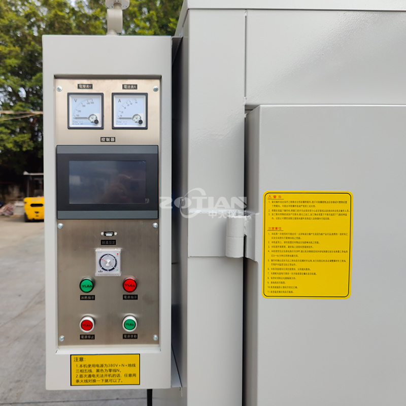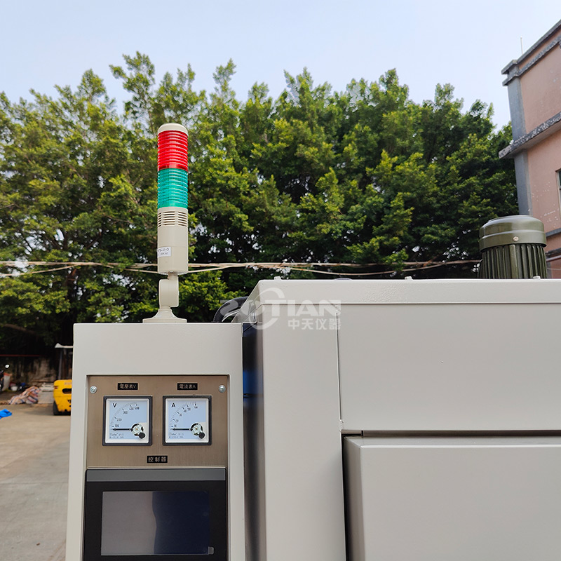 380V,三相四線制,加熱功率 9KW,配控制電箱于烤箱頂部,采用優(yōu)怡觸摸屏控制器,配有 PV 和 SV 數(shù)字顯示窗口。提供 USB 接口:可記錄運(yùn)行中溫度值,可下載各種測試參數(shù)信息。采用SSR 固態(tài)繼電器控制加熱器,顛覆傳統(tǒng)過零觸發(fā)時(shí)帶來的電流瞬間沖擊大、控溫波動(dòng)大等影響,配合性價(jià)比極高的 DC24V 輸出型控制器,可使輸出電壓平穩(wěn)線性變化,控溫效果更穩(wěn)定,性能更穩(wěn)定,使溫度更加精準(zhǔn),溫度由室溫+10℃-400℃可調(diào)。功能有 PID 自整定微積分控制、使溫度更加精準(zhǔn),控溫精度±0.5℃,內(nèi)部溫度均勻性±3℃(空載測試)。自動(dòng)恒溫、自動(dòng)計(jì)時(shí)(配有高精度數(shù)顯計(jì)時(shí)器可調(diào) 99 小時(shí) 99 分鐘)溫度到后定時(shí)報(bào)警斷加熱、超溫報(bào)警斷加熱、電源缺相相序保護(hù)等功能,及其它正牌電器控。